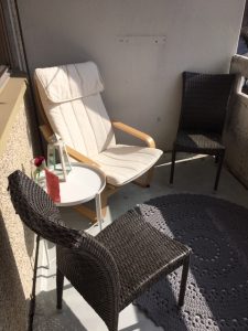 Lopuksi pÀÀstÀÀnki sitte parvekkeelle, tÀÀ on vĂ€hĂ€n vielĂ€ kesken, jotaki haluan lisÀÀ, mutta ihan perus tuolit, pöytĂ€, matto ja kasveja tÀÀltĂ€ löytyy. Kasvit on Tornion TexistĂ€ ja Supermarketista, mustat tuolit fb kirppikseltĂ€ ja pöytĂ€ ikeasta se makso 15âŹ. Matto on se joka on ollu muutaman vuojen minun huoneen lattiassa Torniossa, vaalea matto, joka on kasvien alla on kotoa varastosta otettu. Parveke on aika tĂ€ydellinen, siihen paistaa aurinko lĂ€hes koko pĂ€ivĂ€n ja nauran aina, ettĂ€ voin ottaa aurinkoo sohvalta kĂ€sin.