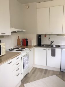 Suurimman osan kodinkoneista kuten kahvinkeitin ja leivänpaahin on kaapissa. En tykkää siitä, että on paljon materiaa pintojen päällä, sen takia mulla on tosi tyhjät pöytäpinnat. Siisteyden saa hyvin ylläpiettyä, ku piettää pinnat suht tyhjinä niin ei tule sellasta tavara ryöppyä vastaan ja on vähemmän pölyjä pyyhittävänä kun ei tarvi esineitä erikseen siirrellä ja pyyhkiä.