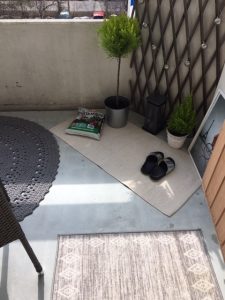 Lopuksi päästäänki sitte parvekkeelle, tää on vähän vielä kesken, jotaki haluan lisää, mutta ihan perus tuolit, pöytä, matto ja kasveja täältä löytyy. Kasvit on Tornion Texistä ja Supermarketista, mustat tuolit fb kirppikseltä ja pöytä ikeasta se makso 15€. Matto on se joka on ollu muutaman vuojen minun huoneen lattiassa Torniossa, vaalea matto, joka on kasvien alla on kotoa varastosta otettu. Parveke on aika täydellinen, siihen paistaa aurinko lähes koko päivän ja nauran aina, että voin ottaa aurinkoo sohvalta käsin.