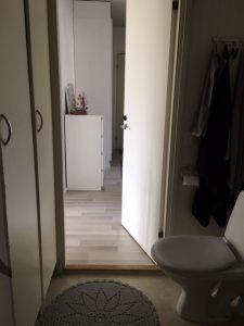 Valosuutta tähän pimeään eteistilaan saan pitämällä makuuhuoneen verhoja ja ovea auki, jolloin luonnonvalo pääsee sisään. En oikeestaan piä valoja päällä melkeen minkää vertaa, oottelen vaan kauhulla niitä syys/talvi iltoja ku on pimeää ja valoa ei tuu muualta ku lampuista.